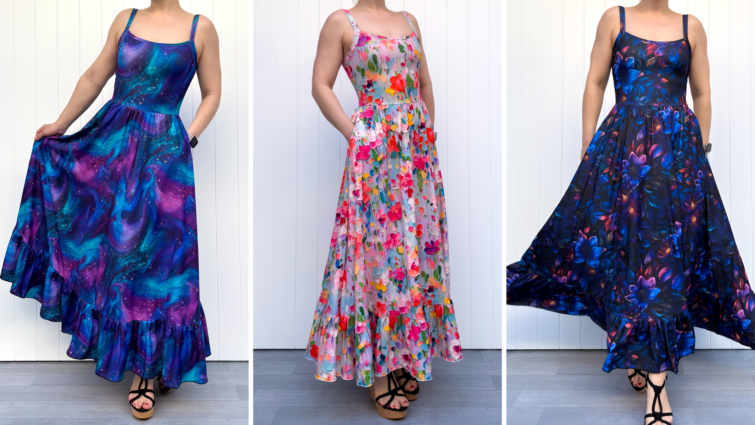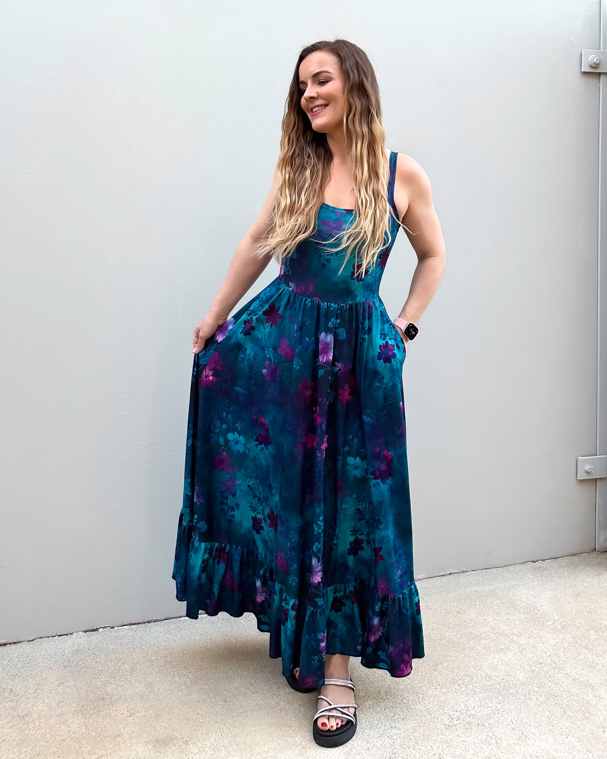 Absolutely beautiful dress. I'm about a size 12 with most clothes, but I brought a small. It fits beautifully. I'm 5ft 2 and it does touch the ground, but just. The only thing is, is there is no Tag to tell you which is front or back. But if you look down the dress and see which way the pockets have been placed you can tell that way. I Absolutely love this dress. I'm so glad I brought 2. Haha this is now dress 8 I own. I Absolutely LOVE these dresses.