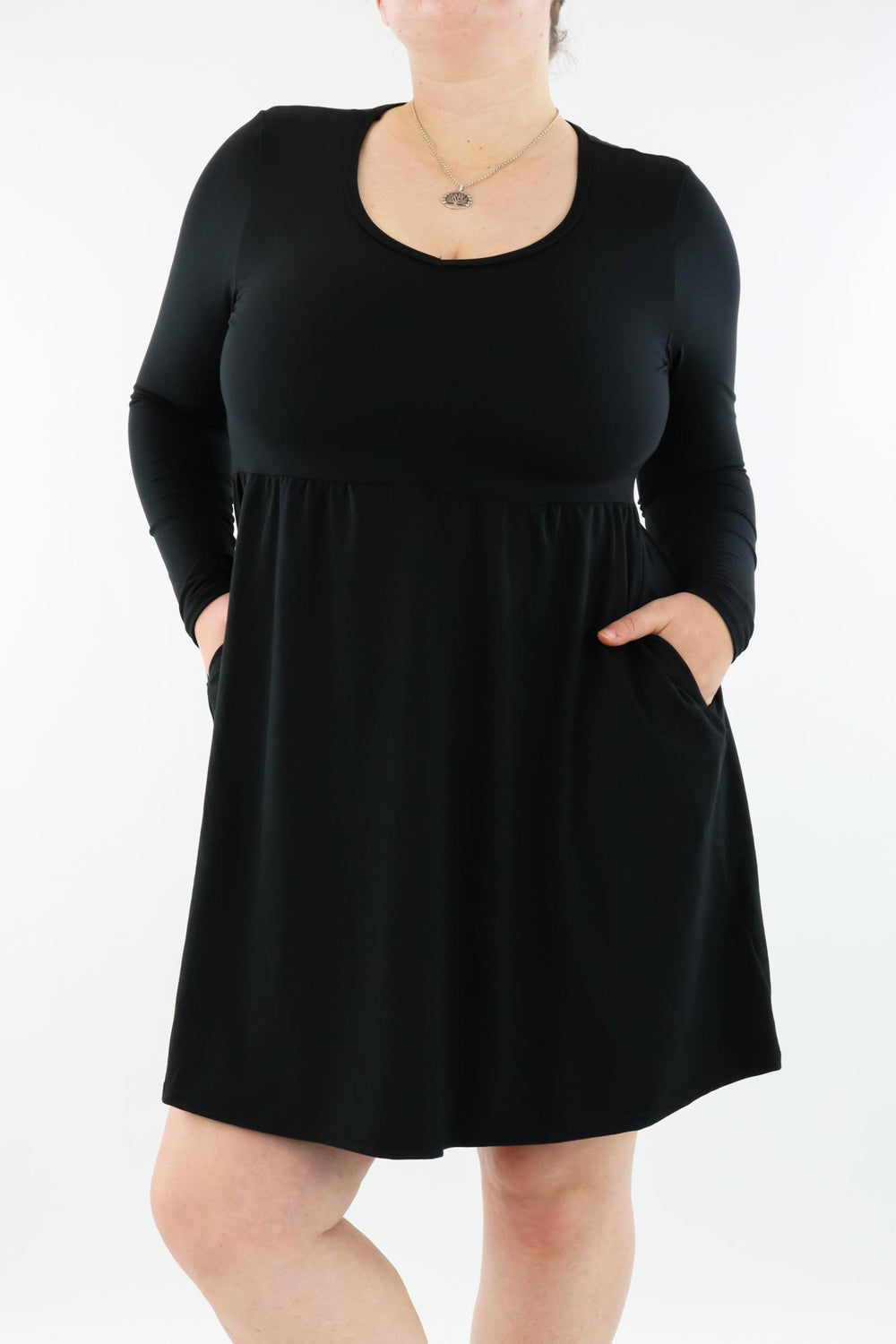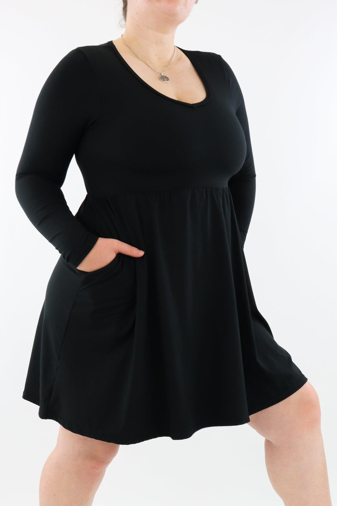 Obsidian Petal - Knee Dress - Long Sleeve - Pockets