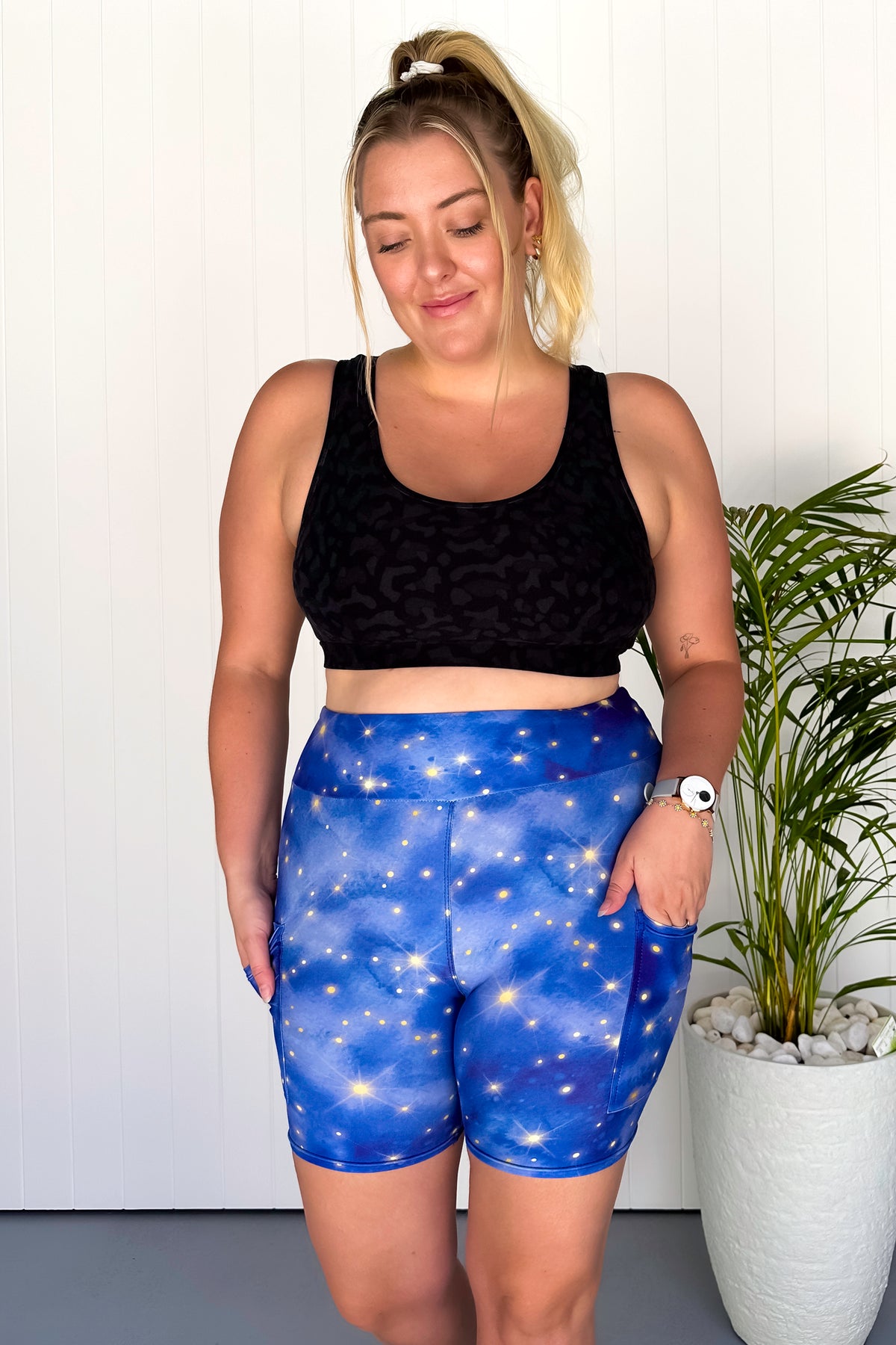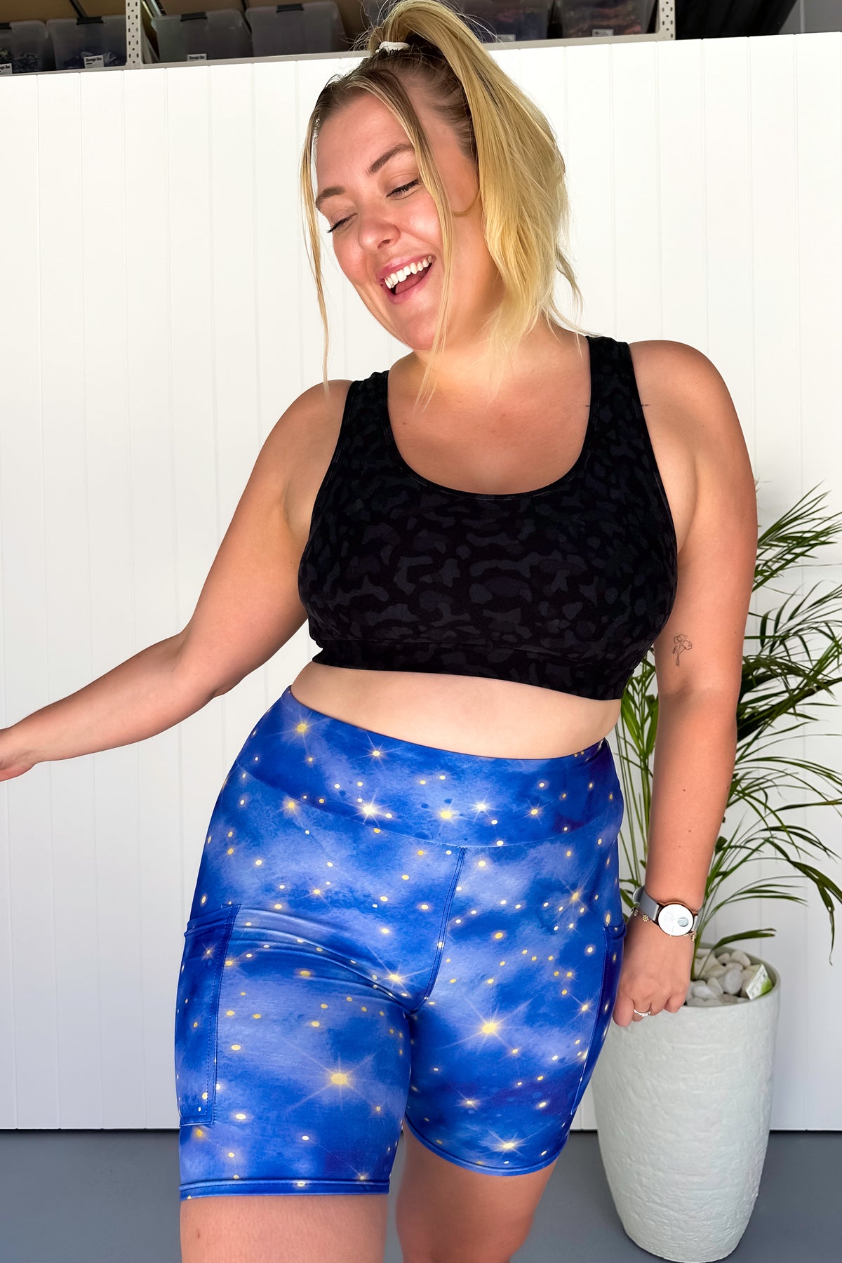 NASA may busy exploring space, but we've already captured a whole galaxy and put it on these shorts. The Admiral Sky Casual Mid Shorts features a cloudy, deep cosmic blue background littered with golden twinkling stars. And if you're someone that prefers a complete outfit, you can pair these shorts with our matching dress*.