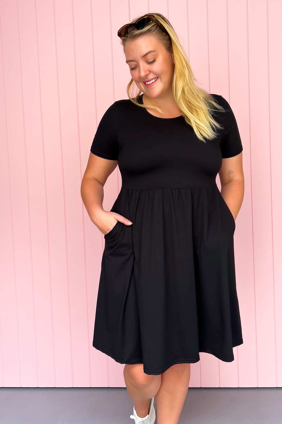 Some dresses are made purely for special occasions, this one is made for your entire life. The Black Knee Length Dress provides a little bit of polish with a lot of comfort. The perfect dress that is more reliable than the multiple group chats you're juggling.