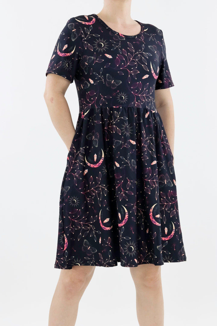 Mystical Fortunes - Short Sleeve Skater Dress - Knee Length - Side Pockets