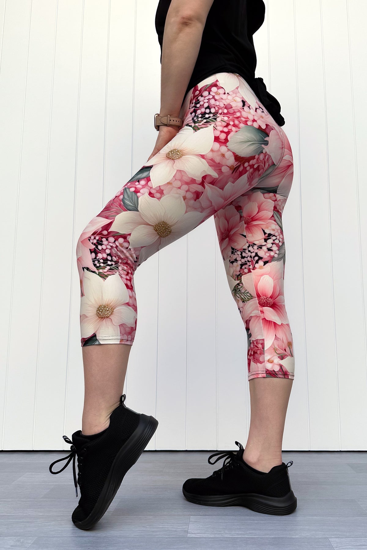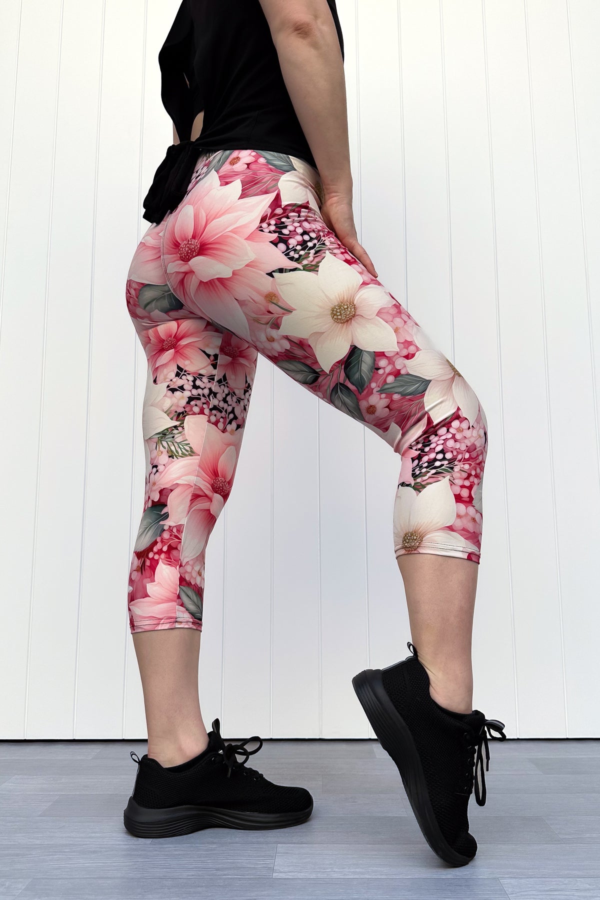 The Pink Poinsettia Capri Leggings are bursting with holiday charm, blending soft blush petals with crisp winter whites. Designed for both comfort and confidence, they’re the pair you’ll reach for when you want festive flair without sacrificing post Christmas lunch comfort.