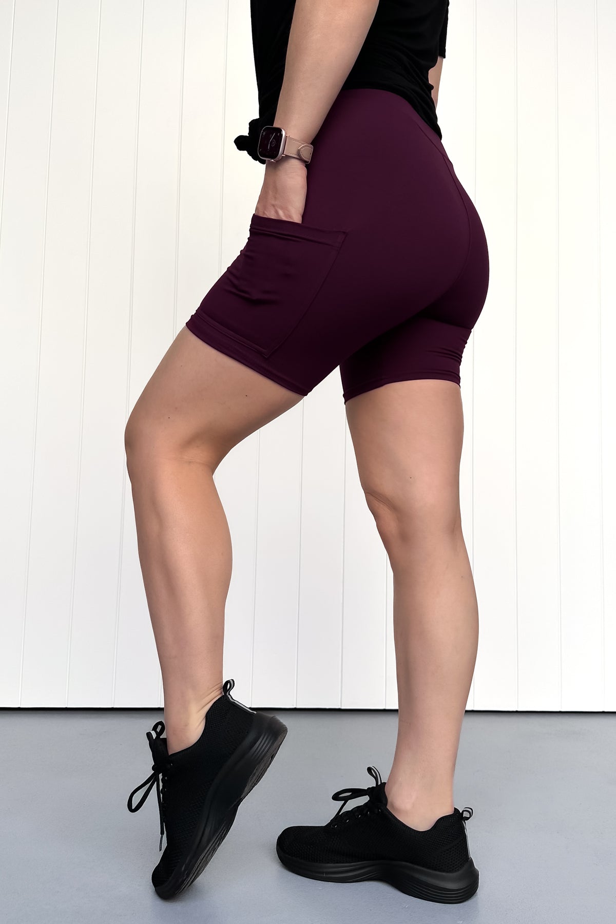 Not too short, not too long—just right. These Plum Mid-Length Shorts hit mid-thigh for that sweet spot of comfort and ease. Built in our signature stretch fabric with side pockets that actually hold things, they’re made for real bodies, real comfort, and real days off.