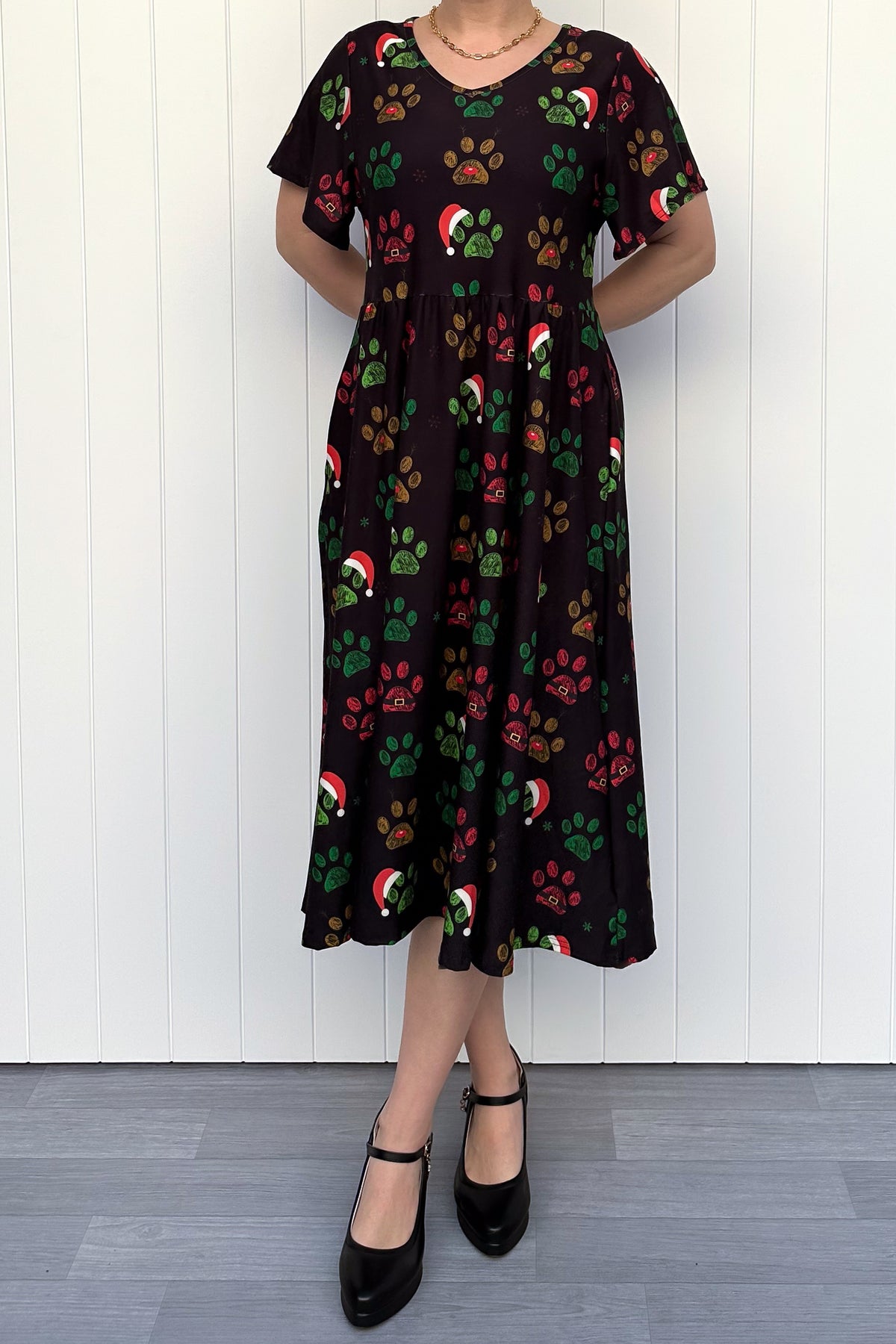 Santa Paws - Midi Dress - Flutter Sleeve - Pockets